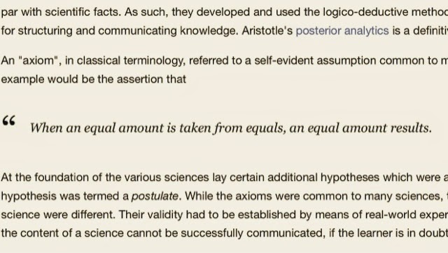 Credit to Wikipedia for this image of an extract from the page on axioms… Just something to think about, is this truly true?